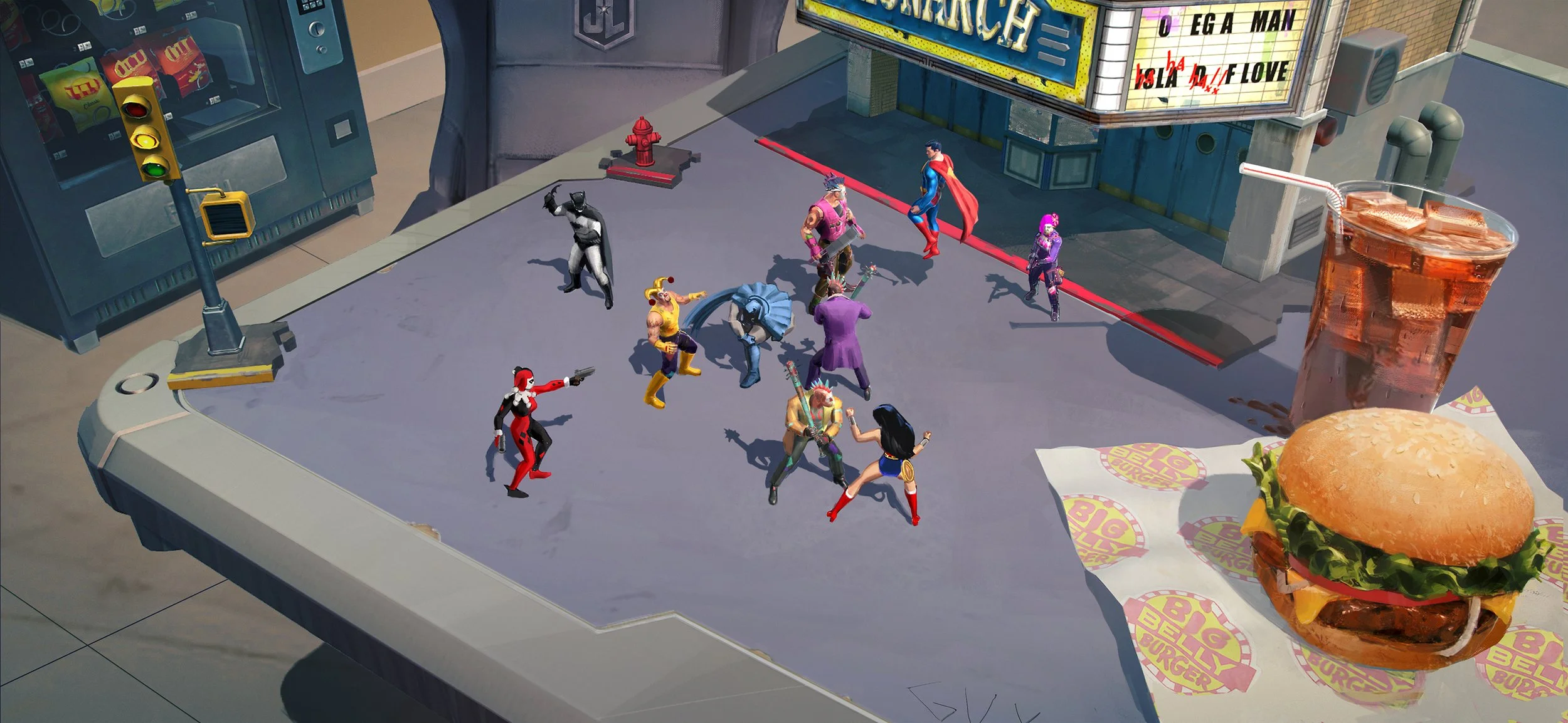 First idea- How to visually represent the Multiverse in a way that we can embrace and celebrate it’s visual variety. There was so much to explore here; the team had a lot of fun diving into established iconic looks and seeing how we can represent them in the game. We also jumped into creating entirely new multiverses of our own. The artwork here is all exploration work and not meant to represent any final art. We were very much in the exploration phase before we made a pivot to the next project.